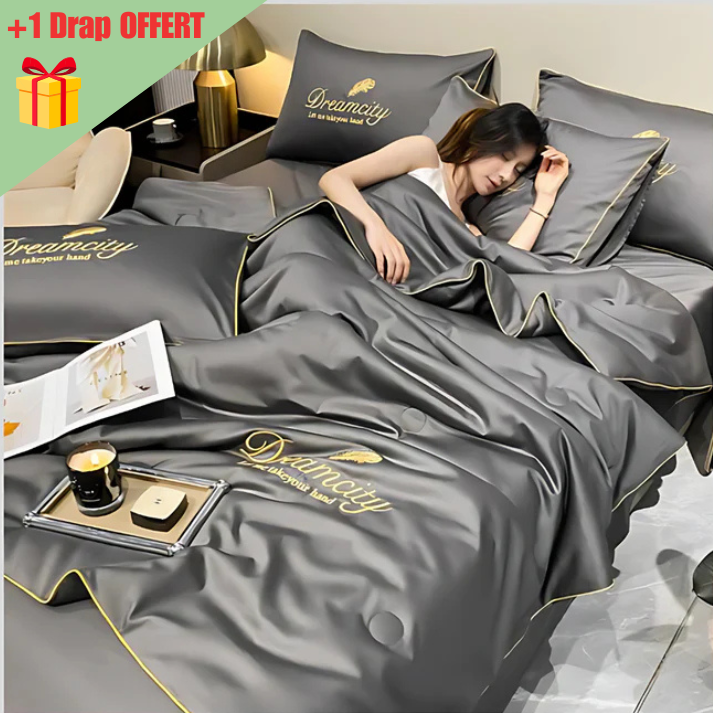Oui, cette couette est conçue en tissu "soie glacée", une matière respirante qui aide à évacuer la chaleur et l’humidité pendant la nuit. Elle offre une sensation de fraîcheur immédiate au contact de la peau, idéale pour l’été.