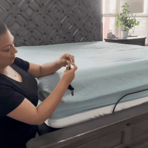 Accrochez les attaches à un coin du drap housse, glissez l’ensemble sous le matelas, puis répétez sur chaque coin.