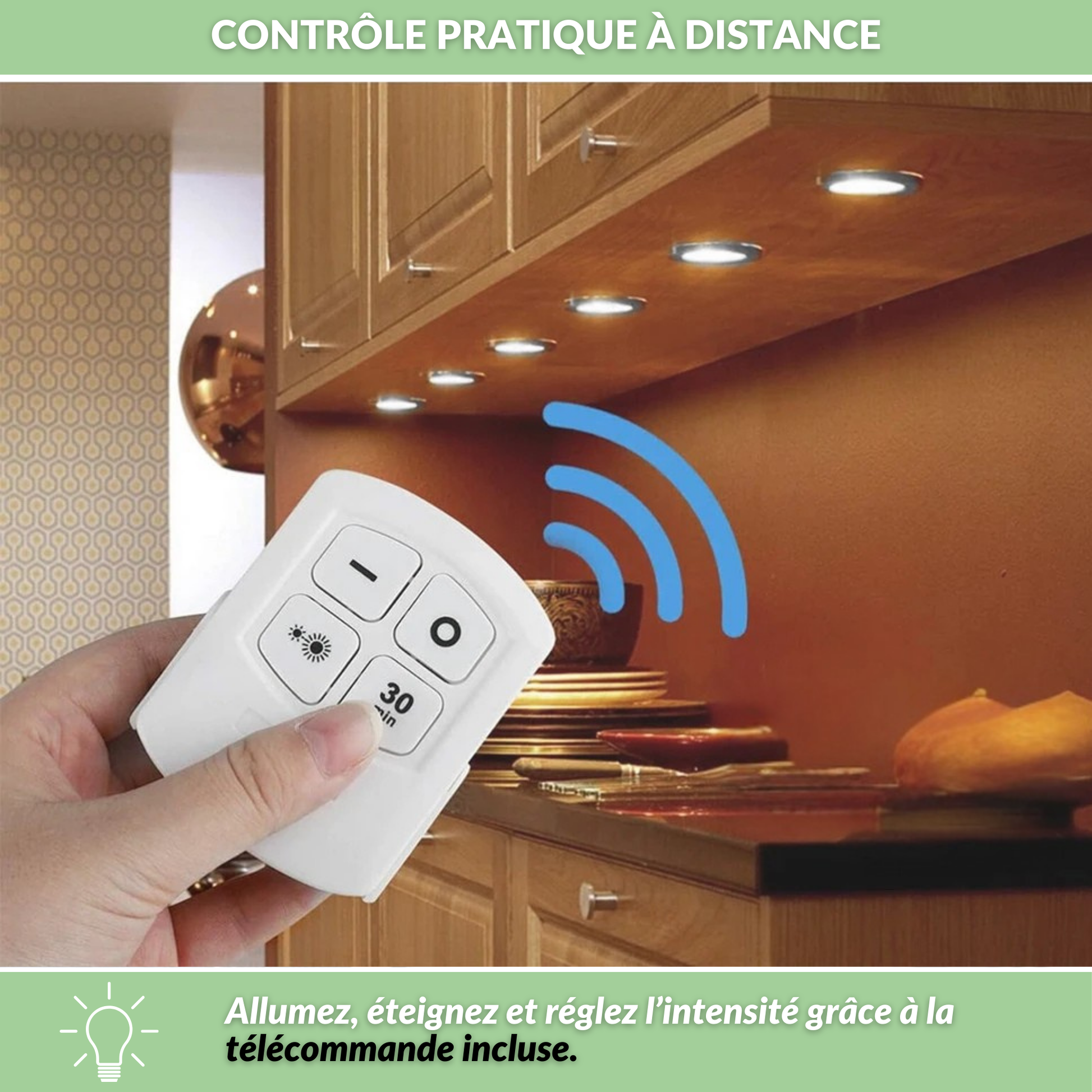 Installez facilement la lampe LED sans fil, sans travaux ni câbles. Un éclairage efficace et design, contrôlable à distance grâce à sa télécommande incluse.